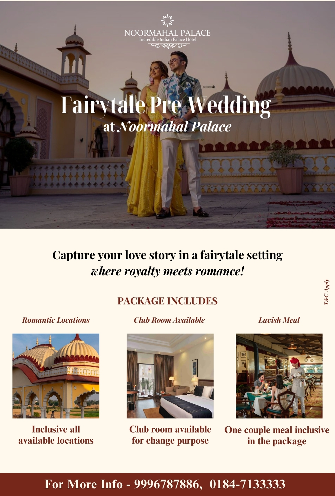 For our guests to make the most of our warm hospitality, we have curated various lucrative offers and packages. Being one of the best hotels in KARNAL, Noormahal Palace brings an array of 'out of the ordinary' choices for you. Experience your money's worth with the most attractive offers in town.